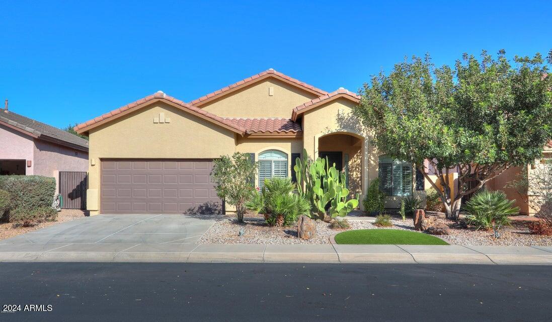 NEW CARPET AND FRESHLY PAINTED WALLS! This large single level home in the much sought after Villages subdivision. Many features included are 20-inch diagonal tile, gorgeous, upgraded cabinets with crown molding, plantation shutters, granite kitchen counters, GE Profile stainless steel appliances, and much more. You're going to fall in love with the spacious floorplan, 10 ft ceilings and large split master bedroom with sitting room, and master bath with double sinks and separate tub and shower. The front and back yards are beautifully landscaped, and the large extended patio has plenty of room for hosting family and friends. This popular neighborhood also has some of the best amenities in Maricopa with a heated community pool, clubhouse, fitness center, & tennis and basketball court.