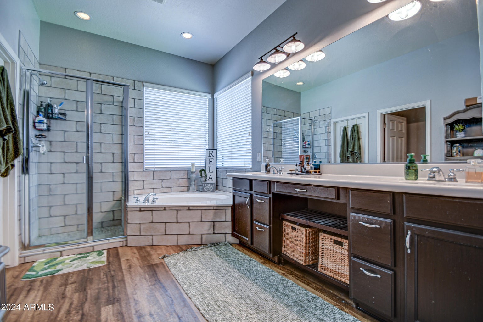 • 20 inch diagonal tile, gorgeous upgraded cabinets with crown molding,